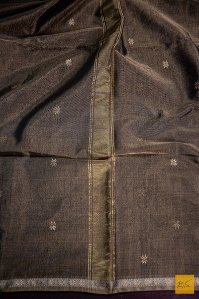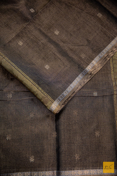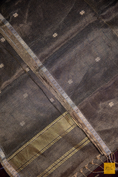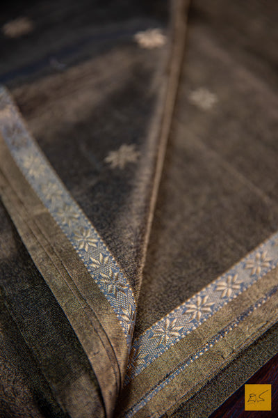 Discover the ultimate addition to your closet with our exquisite Black Maheshwari Tissue Handwoven Saree. Made from premium tissue material, this saree exudes grace and is perfect for any event. The subtle pastel green hue adds a touch of refinement while the intricate handwoven pattern showcases impeccable craftsmanship. Make a statement and exude confidence in this stunning saree!