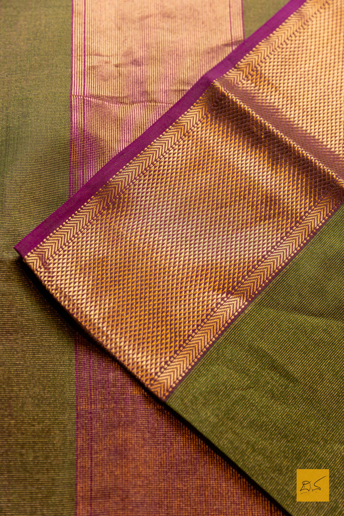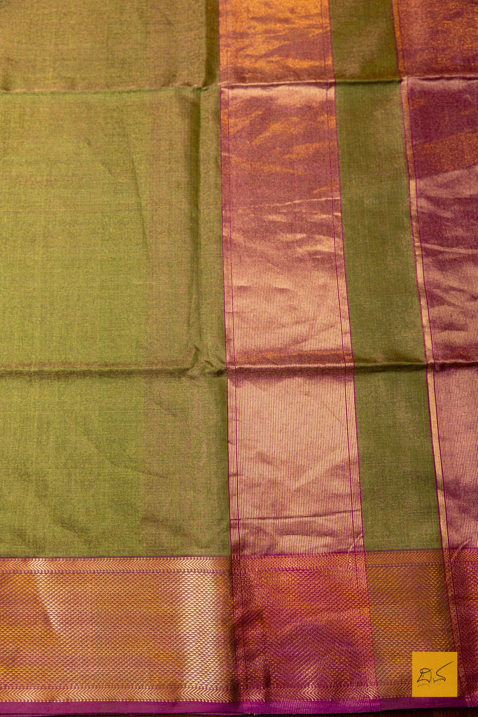 Nirguna - Green-Pink Tissue Maheshwari Silk Cotton Handwoven Saree