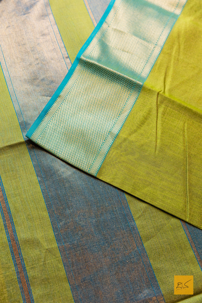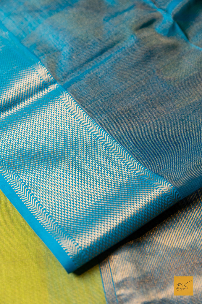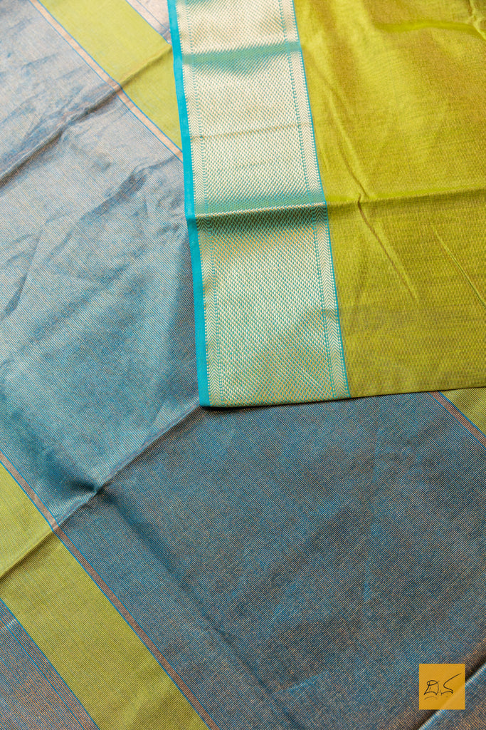 Nishkala- Lime Green-Blue Tissue Maheshwari Silk Cotton Handwoven Saree