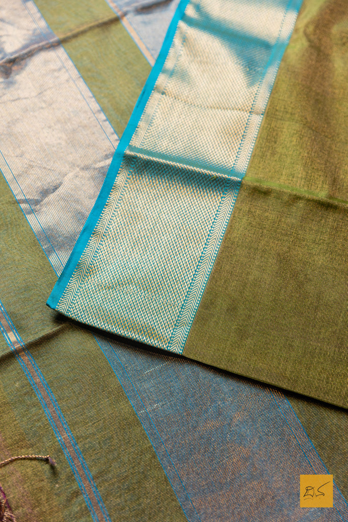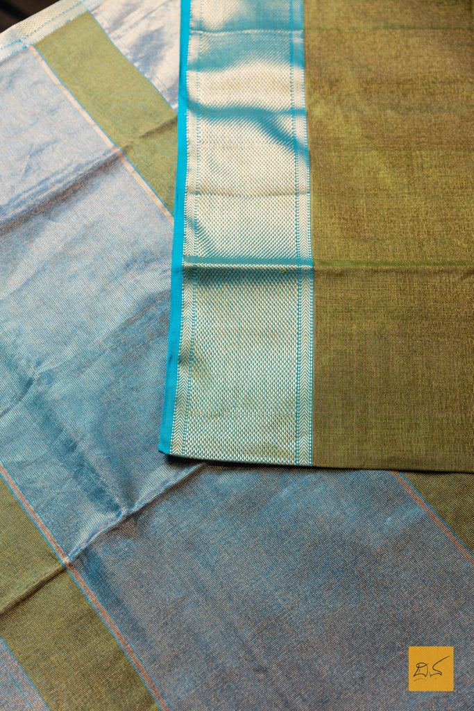Nithya- Green-Blue Tissue Maheshwari Silk Cotton Handwoven Saree