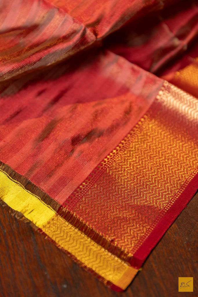 The Shubha Lime Green Maheshwari Pure Silk Handwoven Saree is a radiant expression of elegance and tradition. Crafted with exquisite precision, the luminous lime green body of the saree is beautifully accentuated by a vibrant red border that adds a rich, festive contrast. The pure silk fabric exudes a soft sheen and graceful drape, making it an ideal choice for celebrations and special occasions. Paired with a matching red blouse, this handwoven masterpiece captures the essence of timeless Indian artistry and contemporary charm.