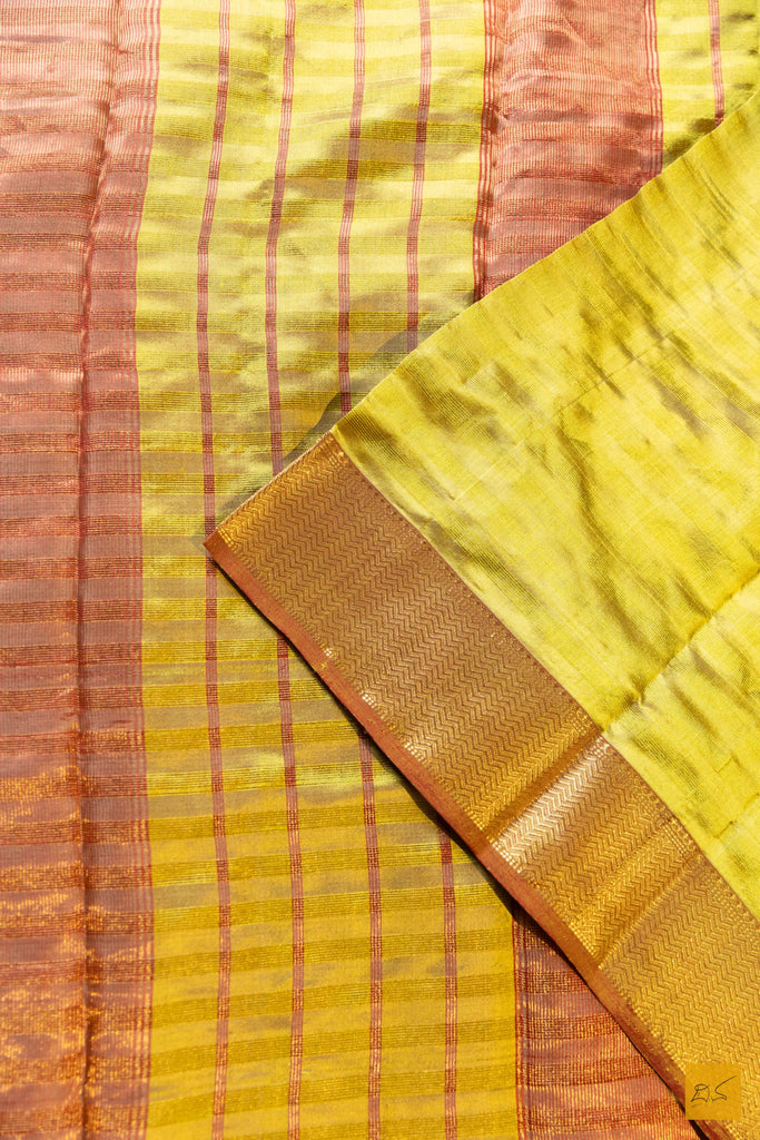Shubha- Lime Green Maheshwari Pure Silk Handwoven Saree