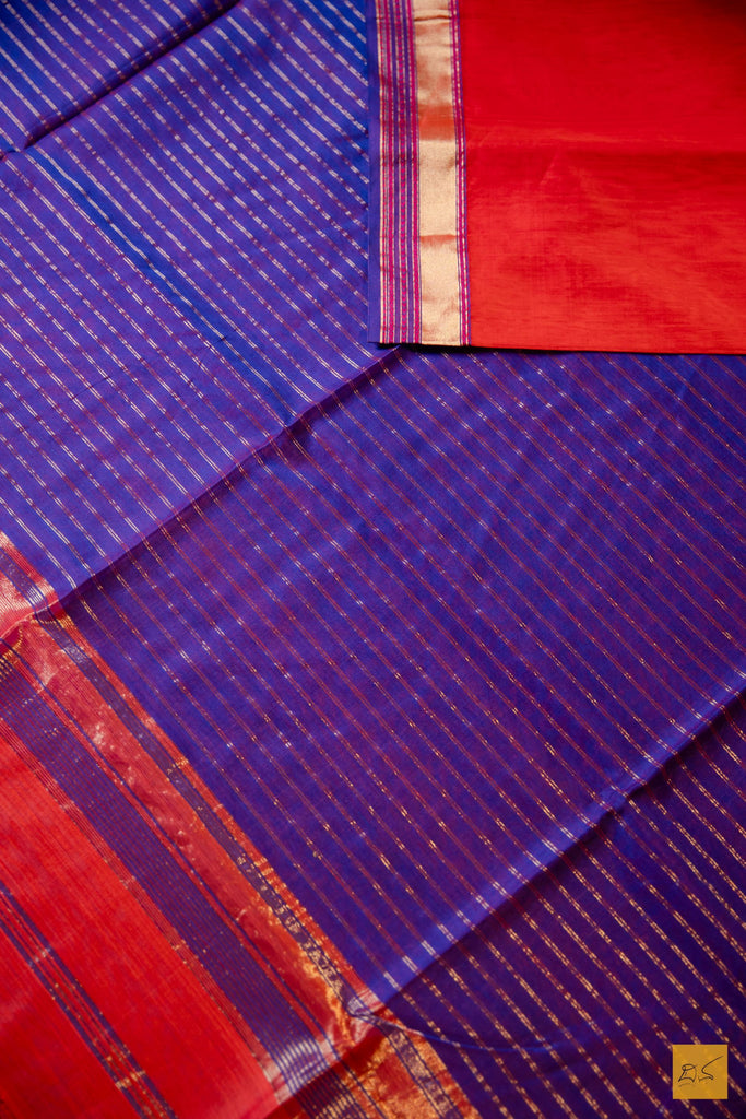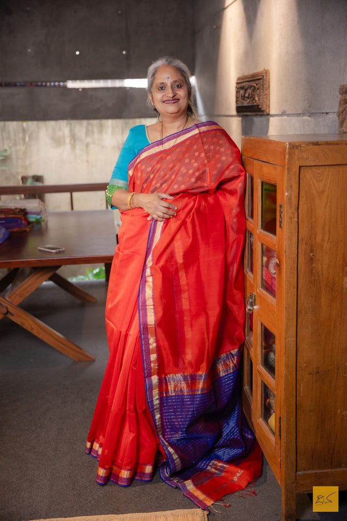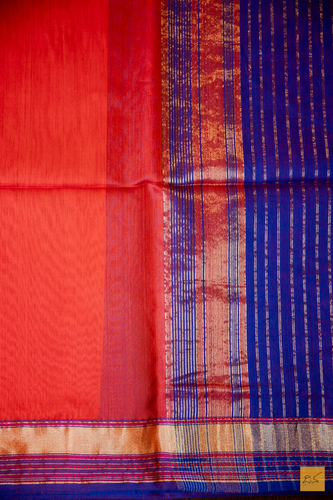 Vidya- Orange Maheshwari Silk Cotton Handwoven Saree