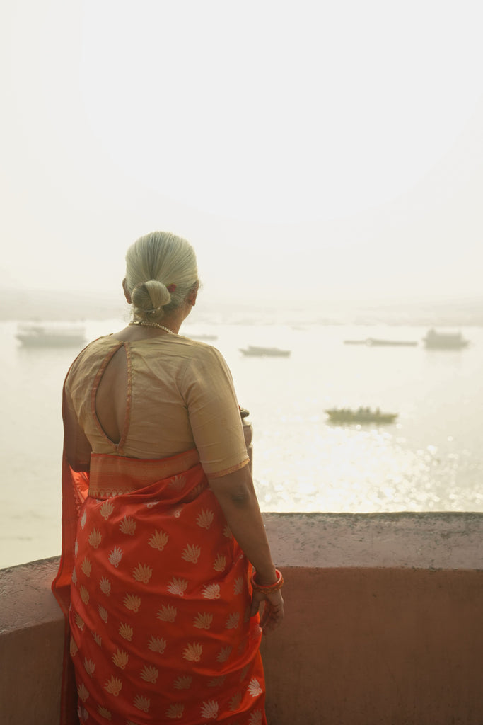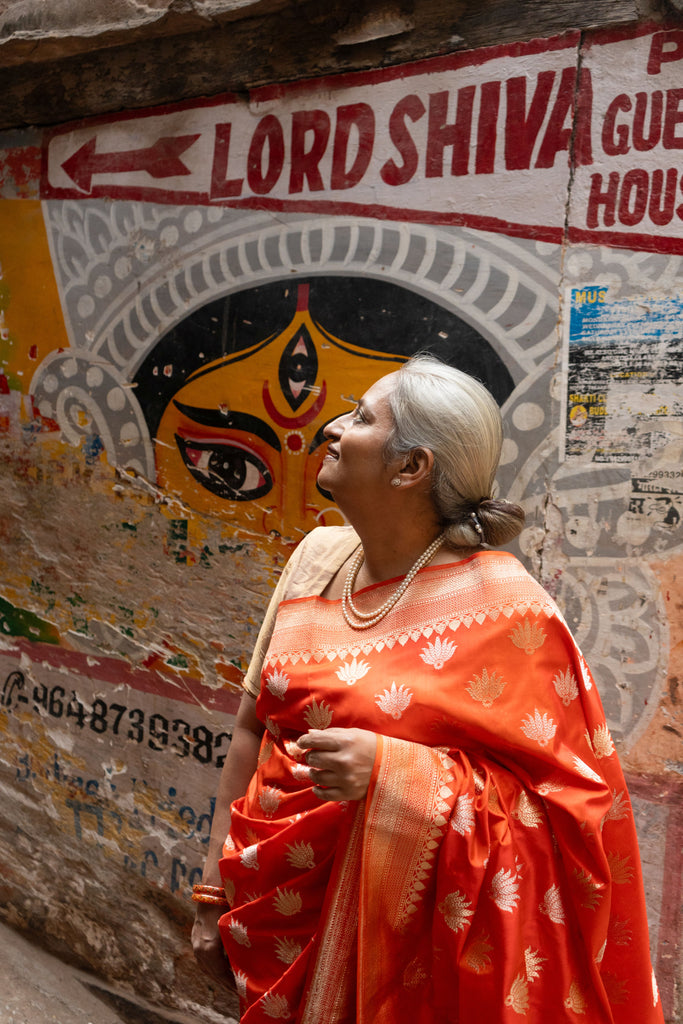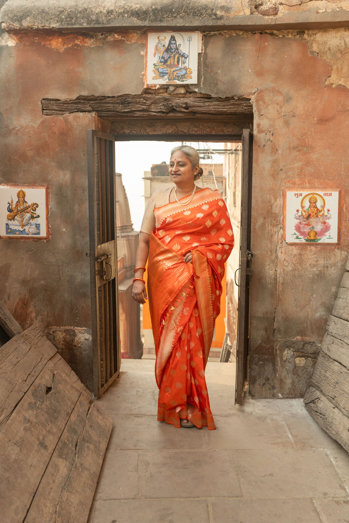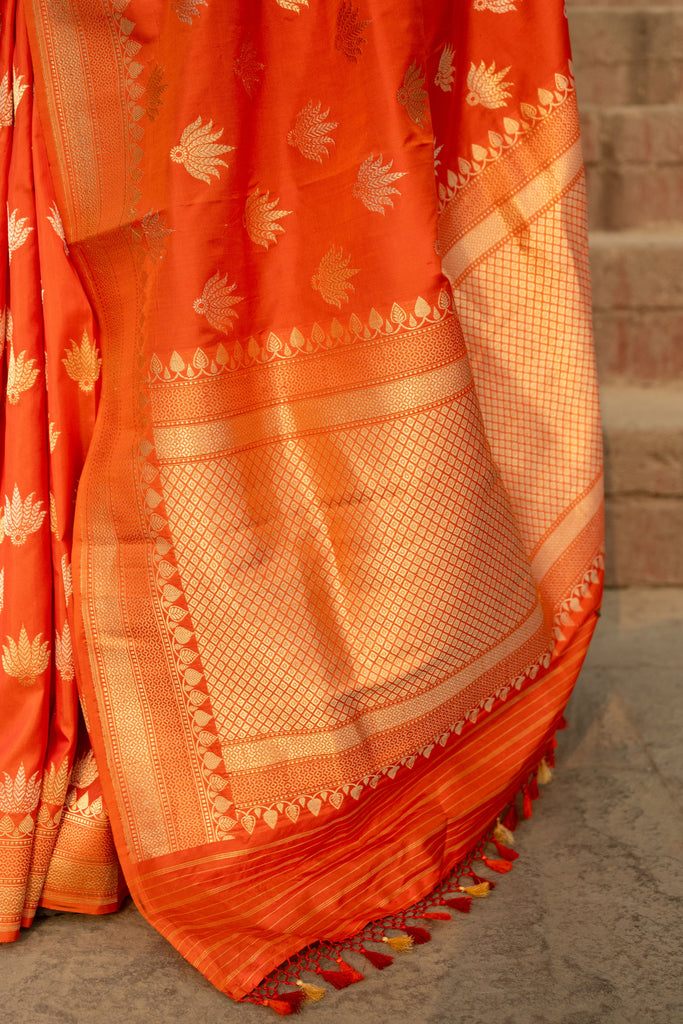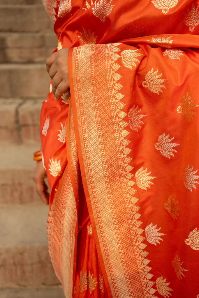 Kesari- Orange Banarasi Katan Silk Handwoven Saree