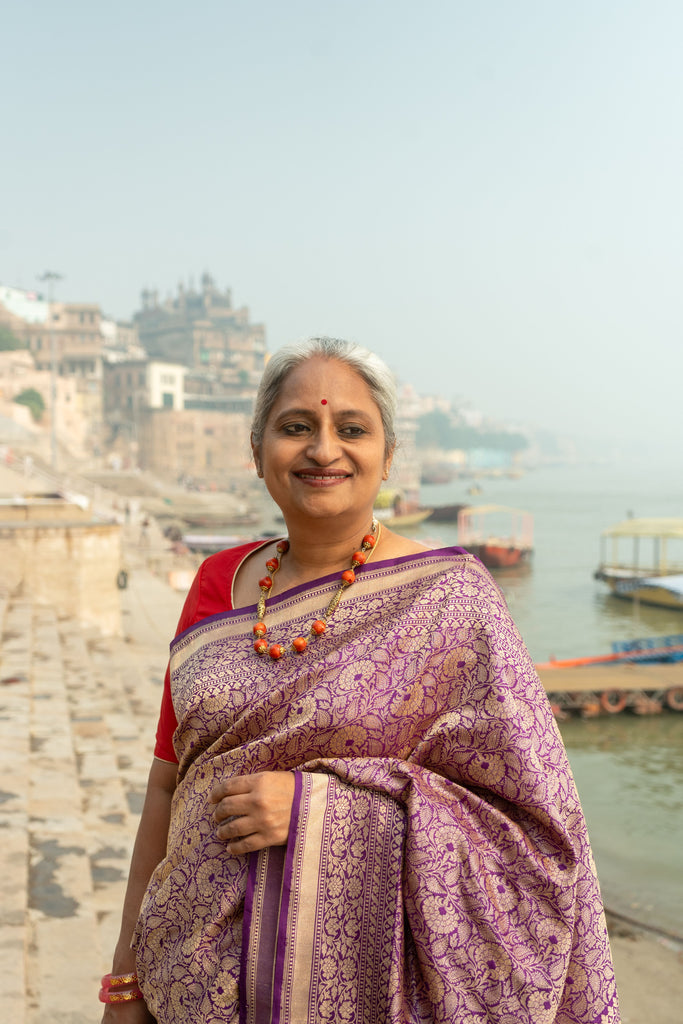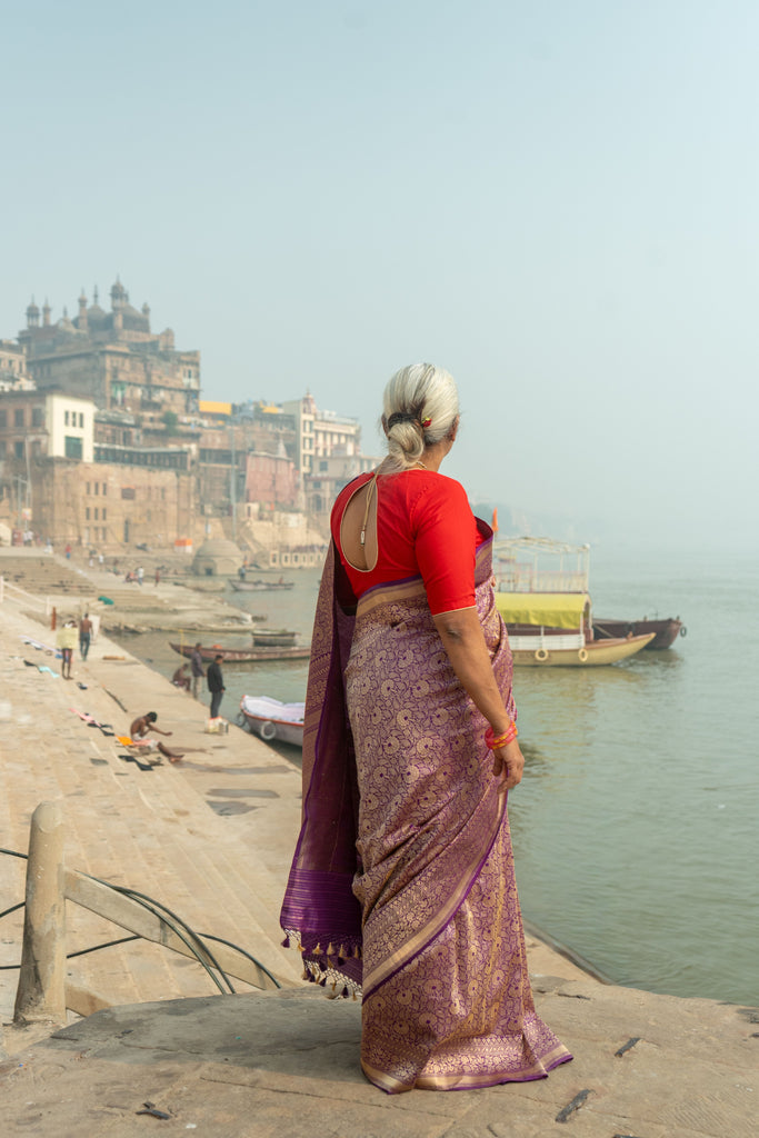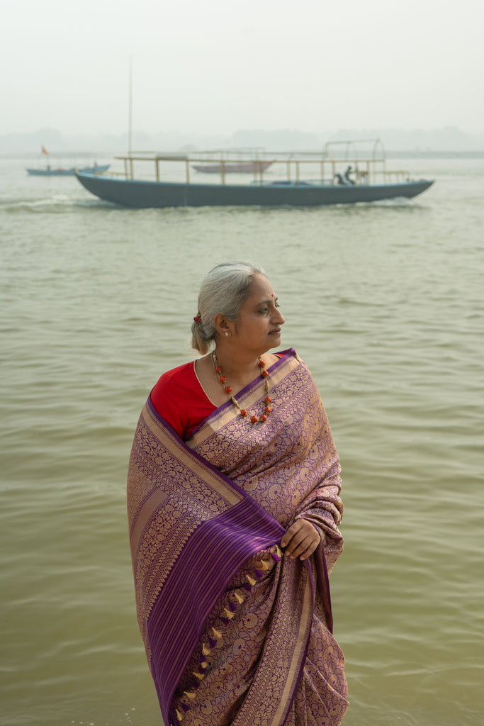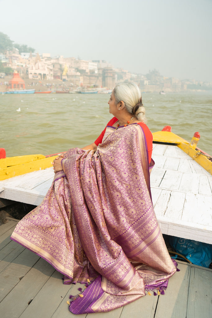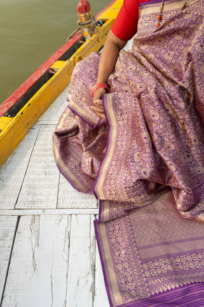 Nilalohitha- Purple Banarasi Katan Silk Handwoven Saree
