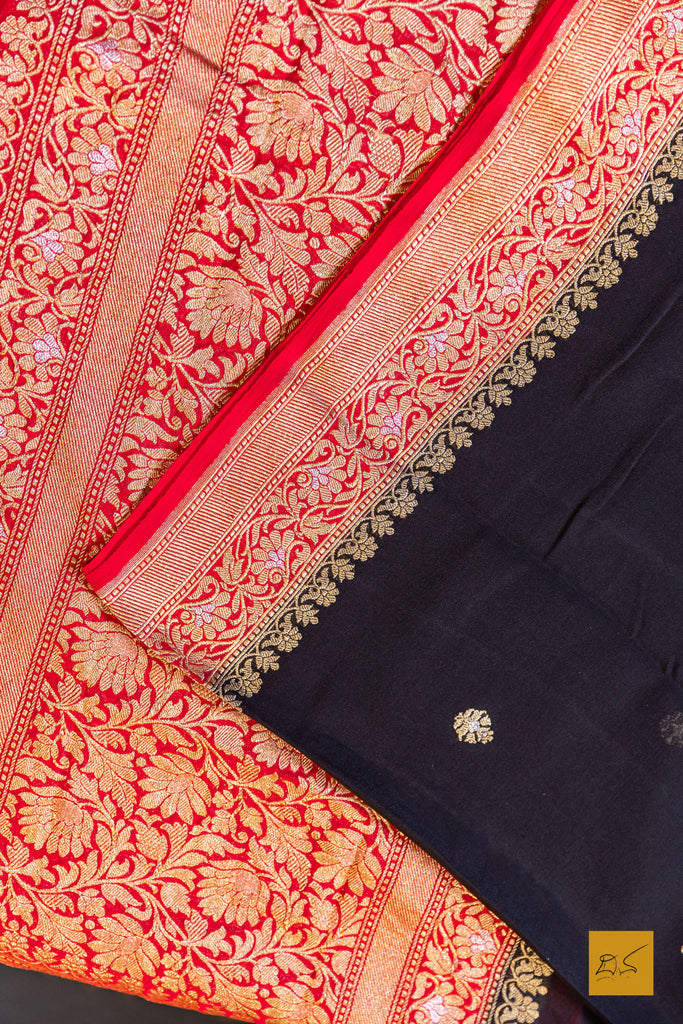 Urvi- Black-Red Banarasi Georgette Handwoven Saree