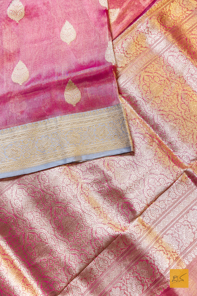 Akshari- Pink Banarasi Tissue Katan Silk Handwoven Saree