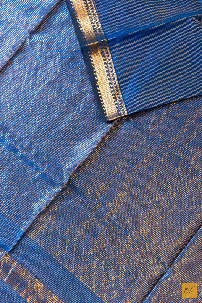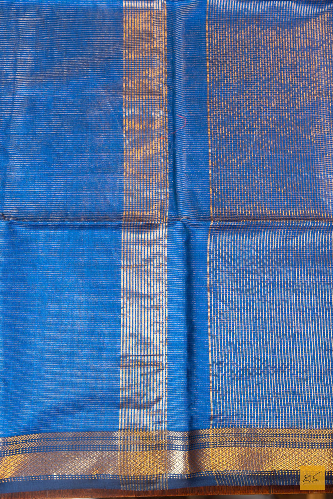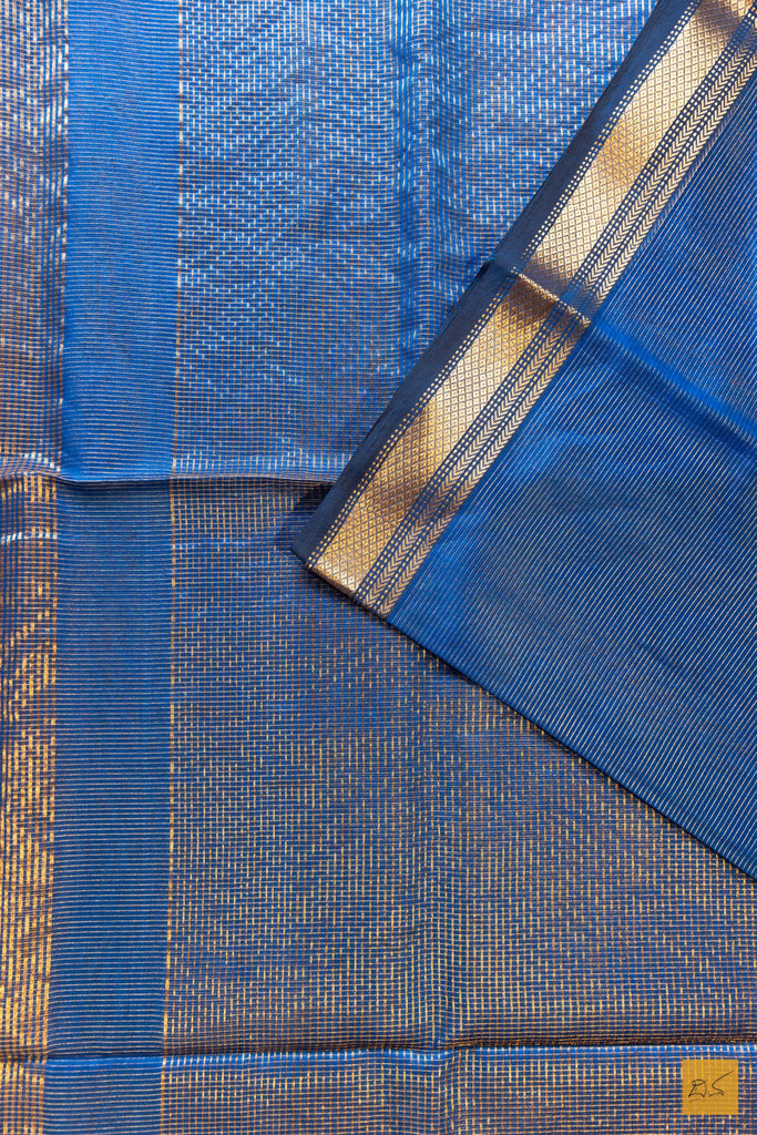Dharini- Blue Tissue Maheshwari Silk Cotton Handwoven Saree