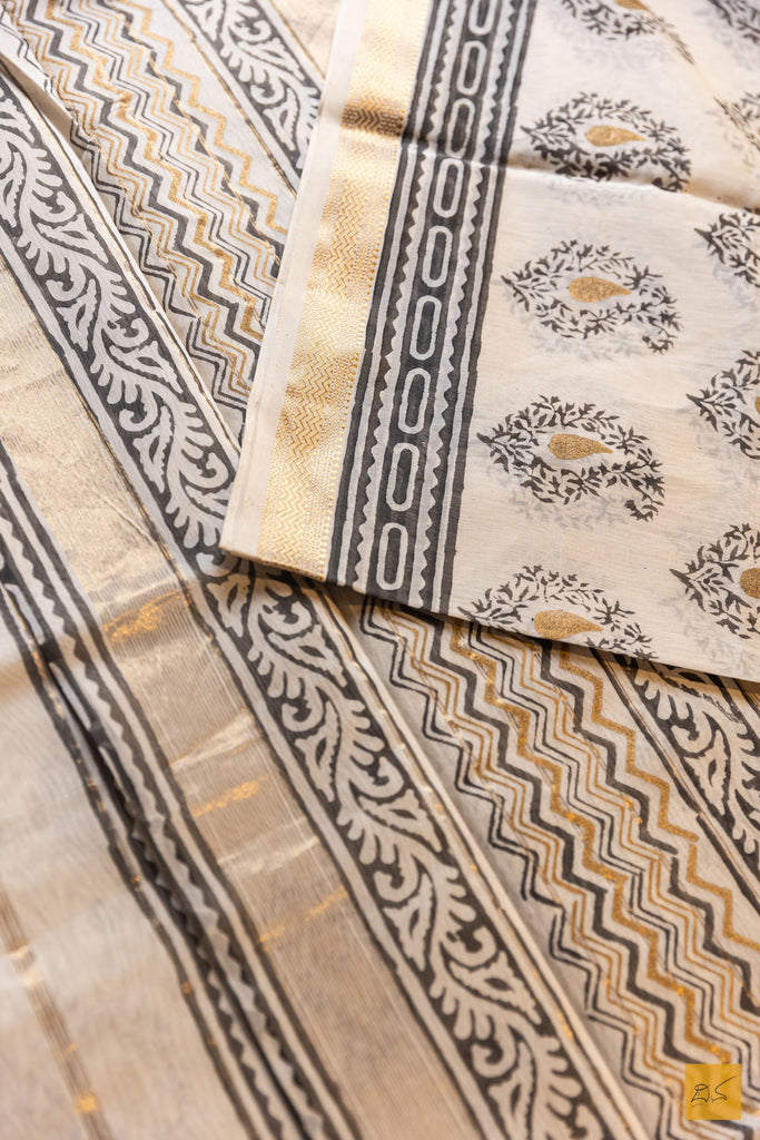 Gauthami- Off White Printed Maheshwari Silk Cotton Handwoven Saree
