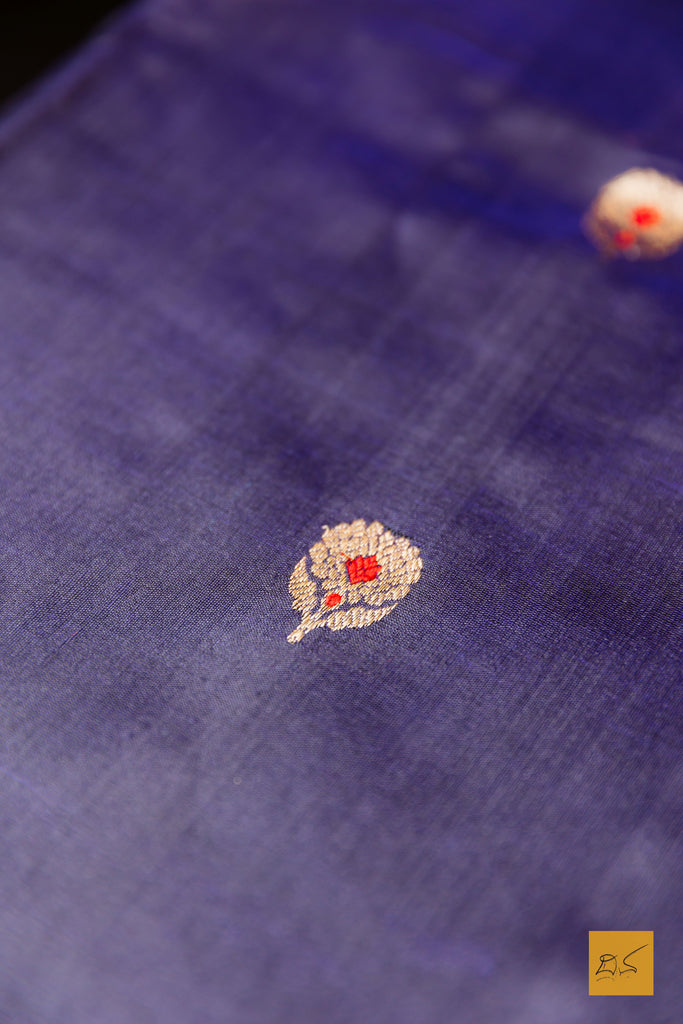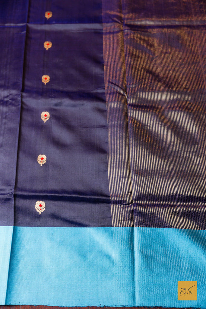 Maheshwari- Navy Blue Chanderi Pure Silk Handwoven Saree