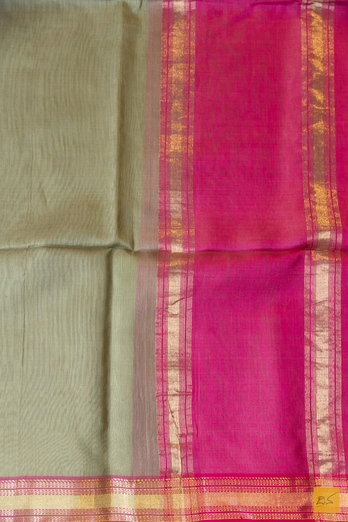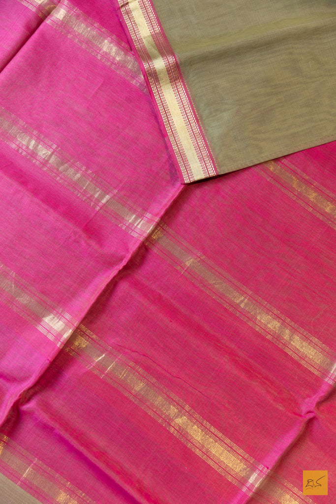 Nimeshika- Green-Pink Maheshwari Silk Cotton Handwoven Saree