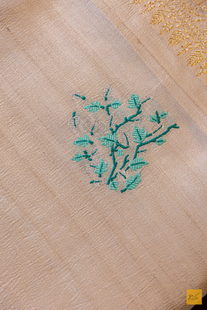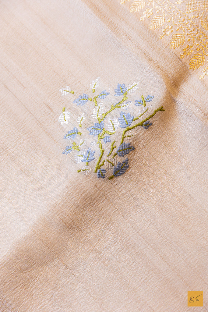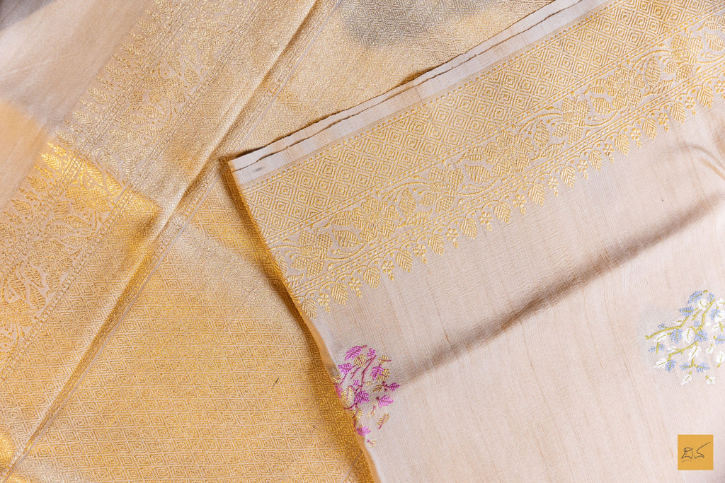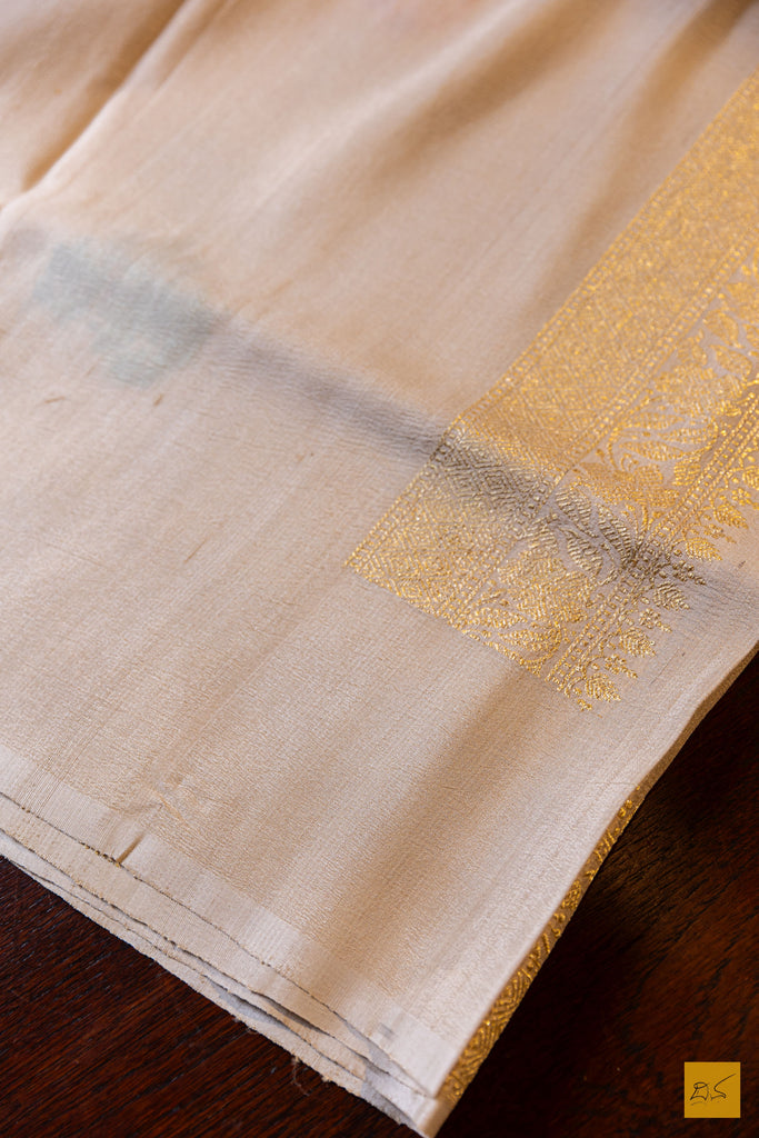Nisha- Off White Banarasi Tusser Silk Handwoven Saree