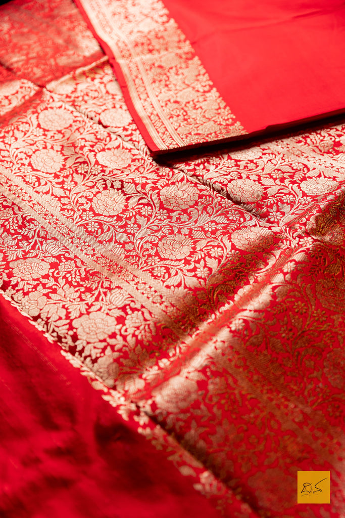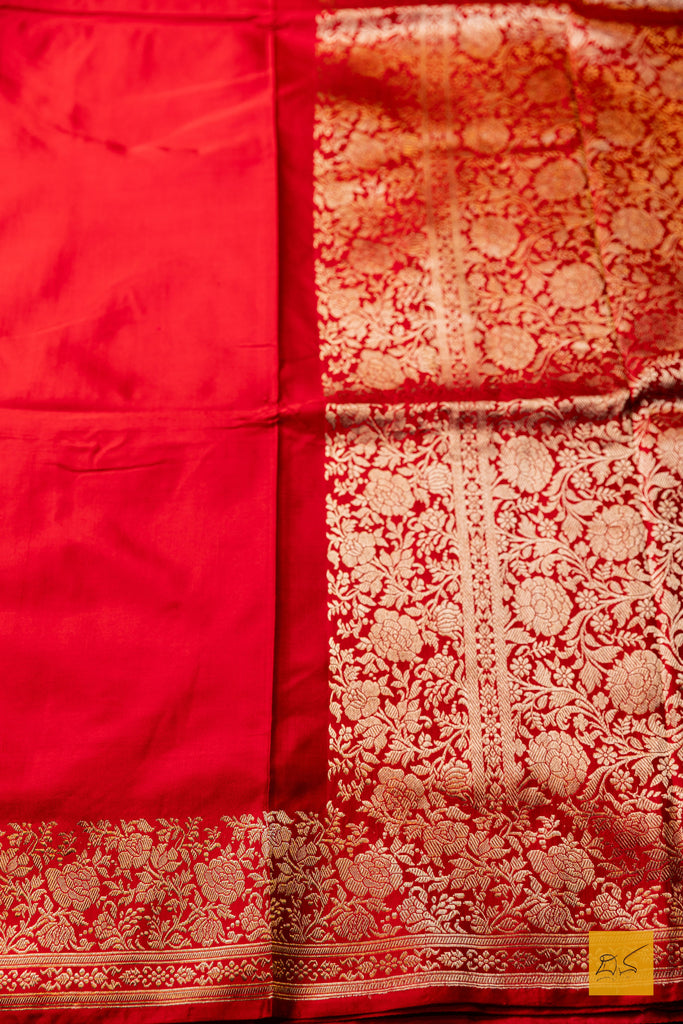 Parameshwari- Red Banarasi Satin Silk Handwoven Saree