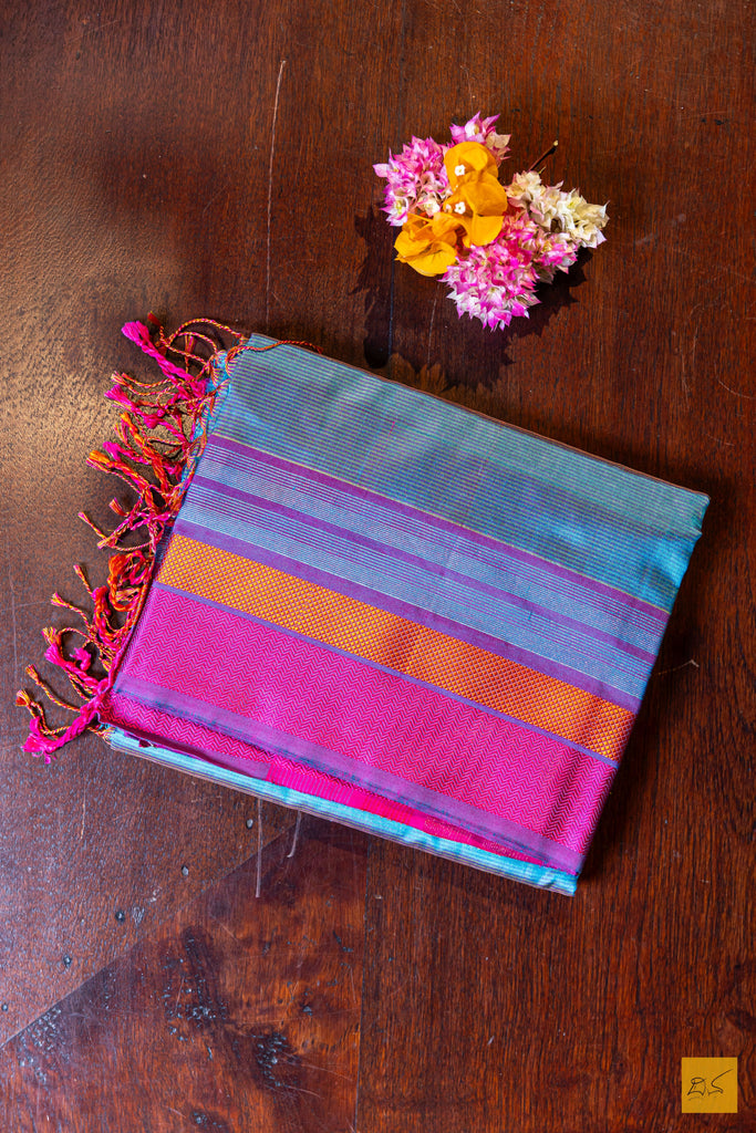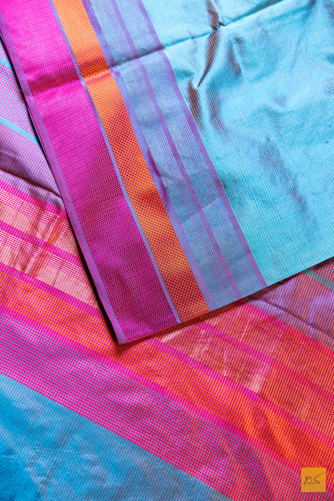 Prajaktha- Blue Maheshwari Pure Silk Handwoven Saree