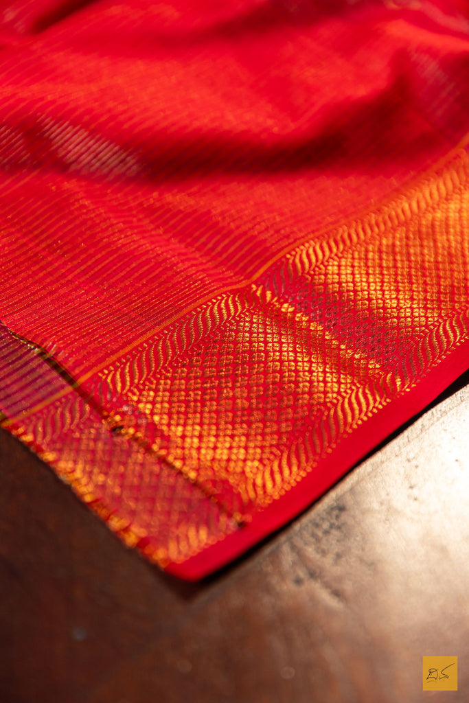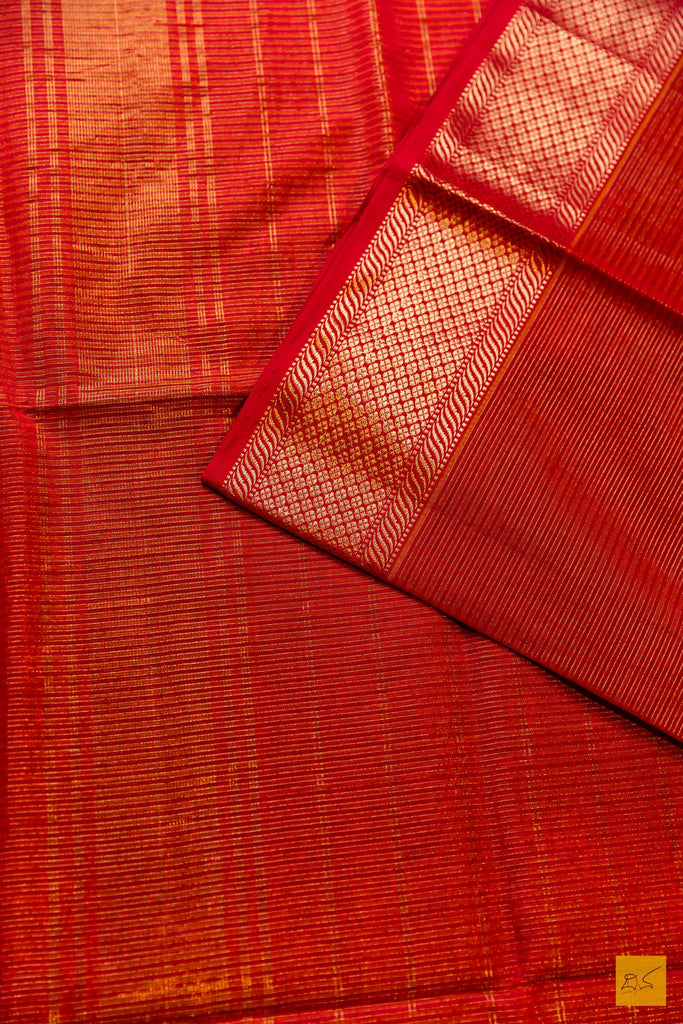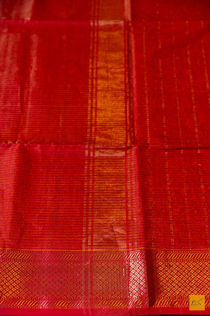 Sharada- Red Tissue Maheshwari Silk Cotton Handwoven Saree