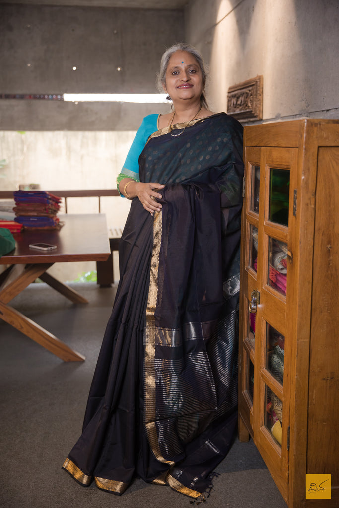 Srikala- Black Maheshwari Silk Cotton Handwoven Saree