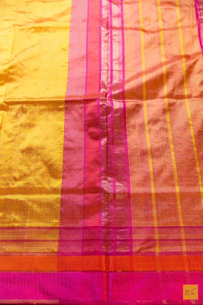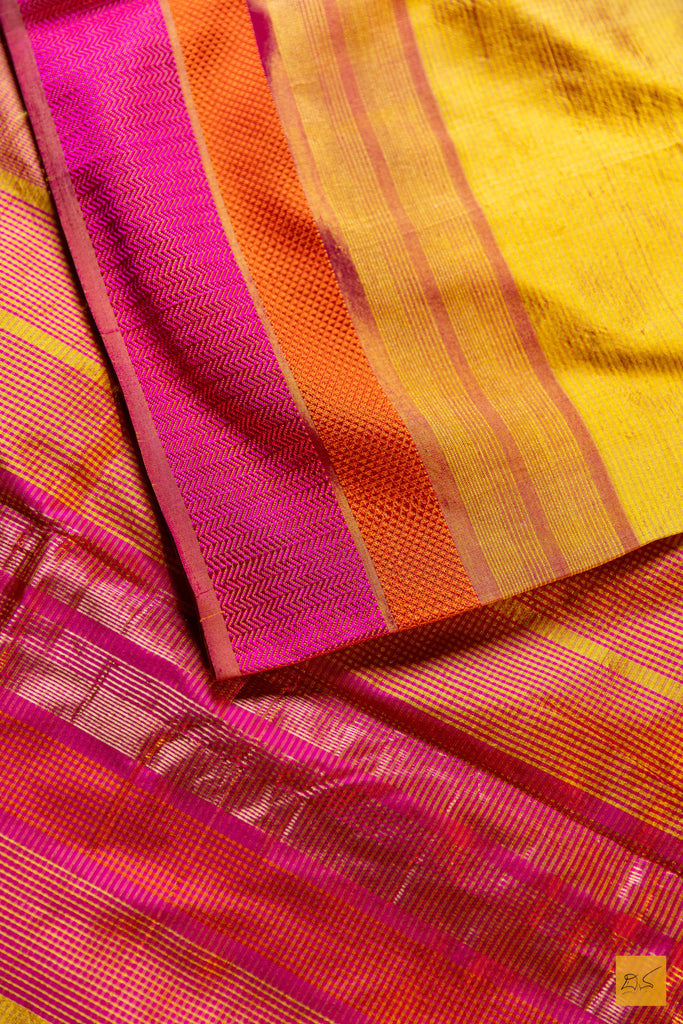 Tanvi - Yellow Maheshwari Pure Silk Handwoven Saree