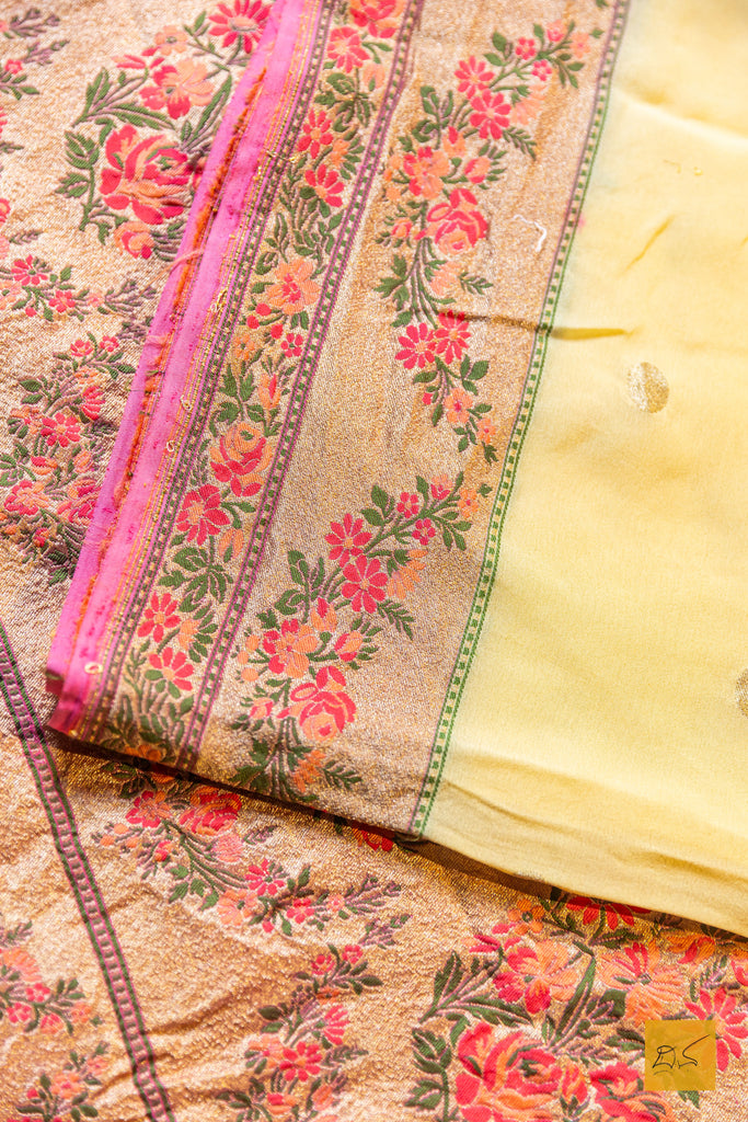 Thrayambhake- Pastle Yellow-Pink Banarasi Georgette Handwoven Saree