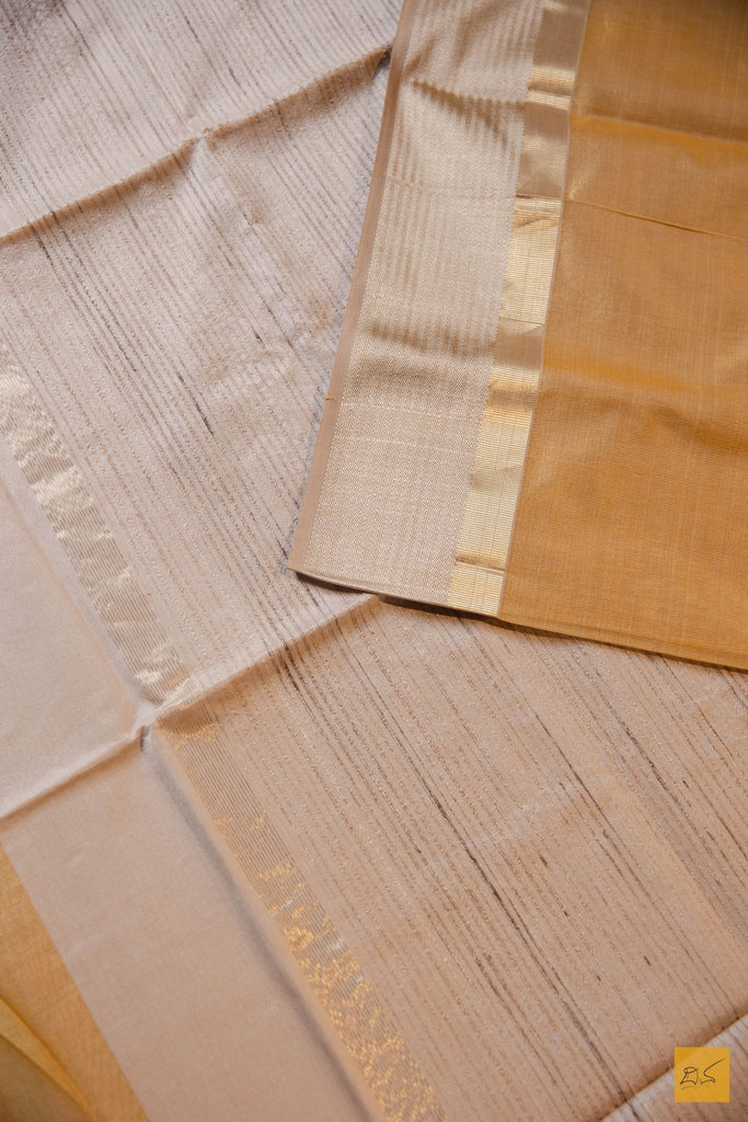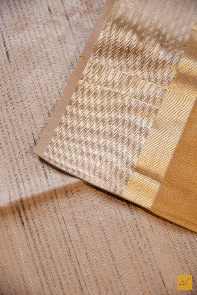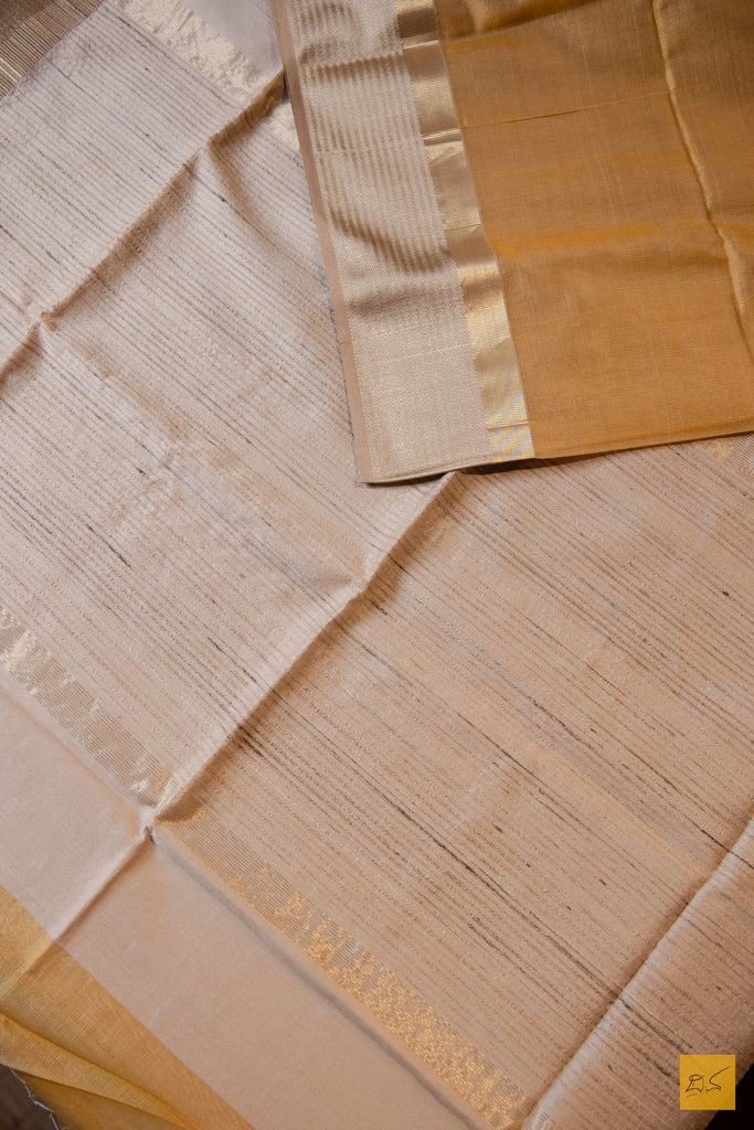 The Uma Golden Maheshwari Silk Cotton Handwoven Saree radiates understated elegance with its warm golden body, beautifully offset by an off-white border and matching off-white pallu. Handwoven in a luxurious silk-cotton blend, the saree drapes gracefully while offering a lightweight, comfortable feel. Perfect for festive occasions, casual gatherings, or traditional celebrations, Uma captures the essence of artisanal craftsmanship with a timeless, sophisticated appeal.