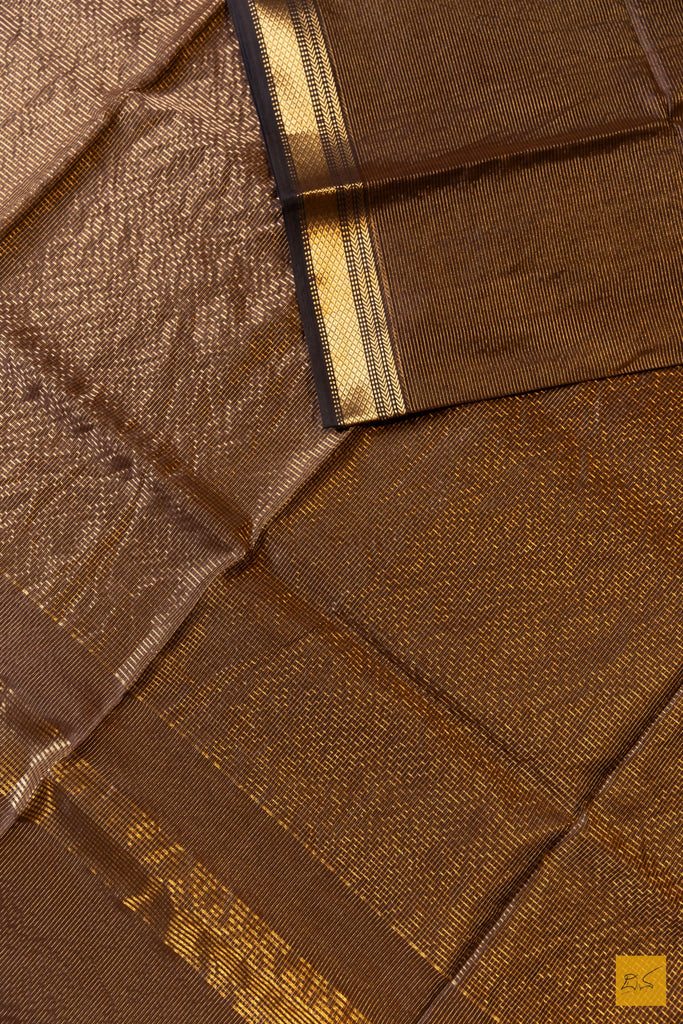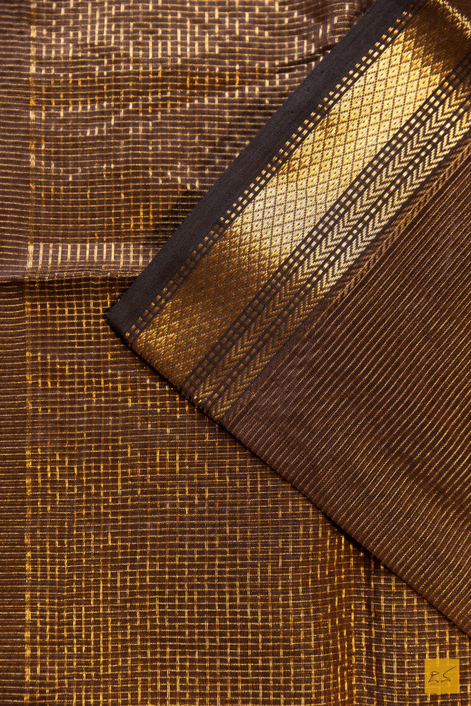 Vedanshi- Brown Tissue Maheshwari Silk Cotton Handwoven Saree
