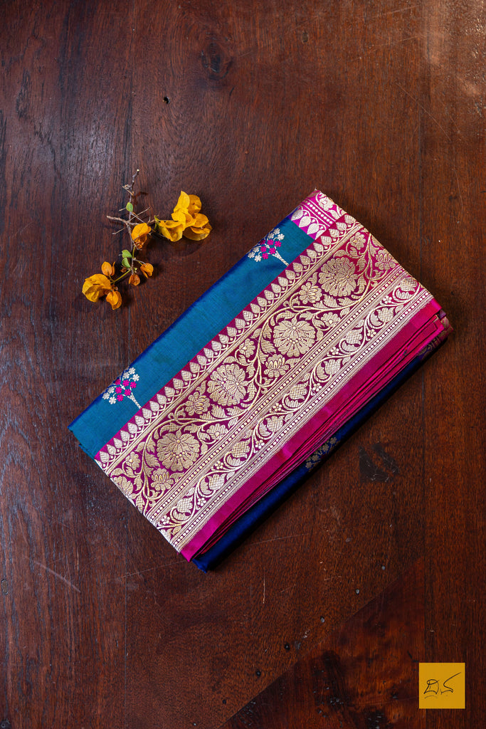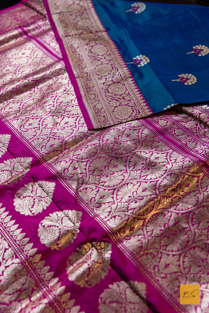Vilasini- Peacock Blue Banarasi Katan Silk Handwoven Saree
